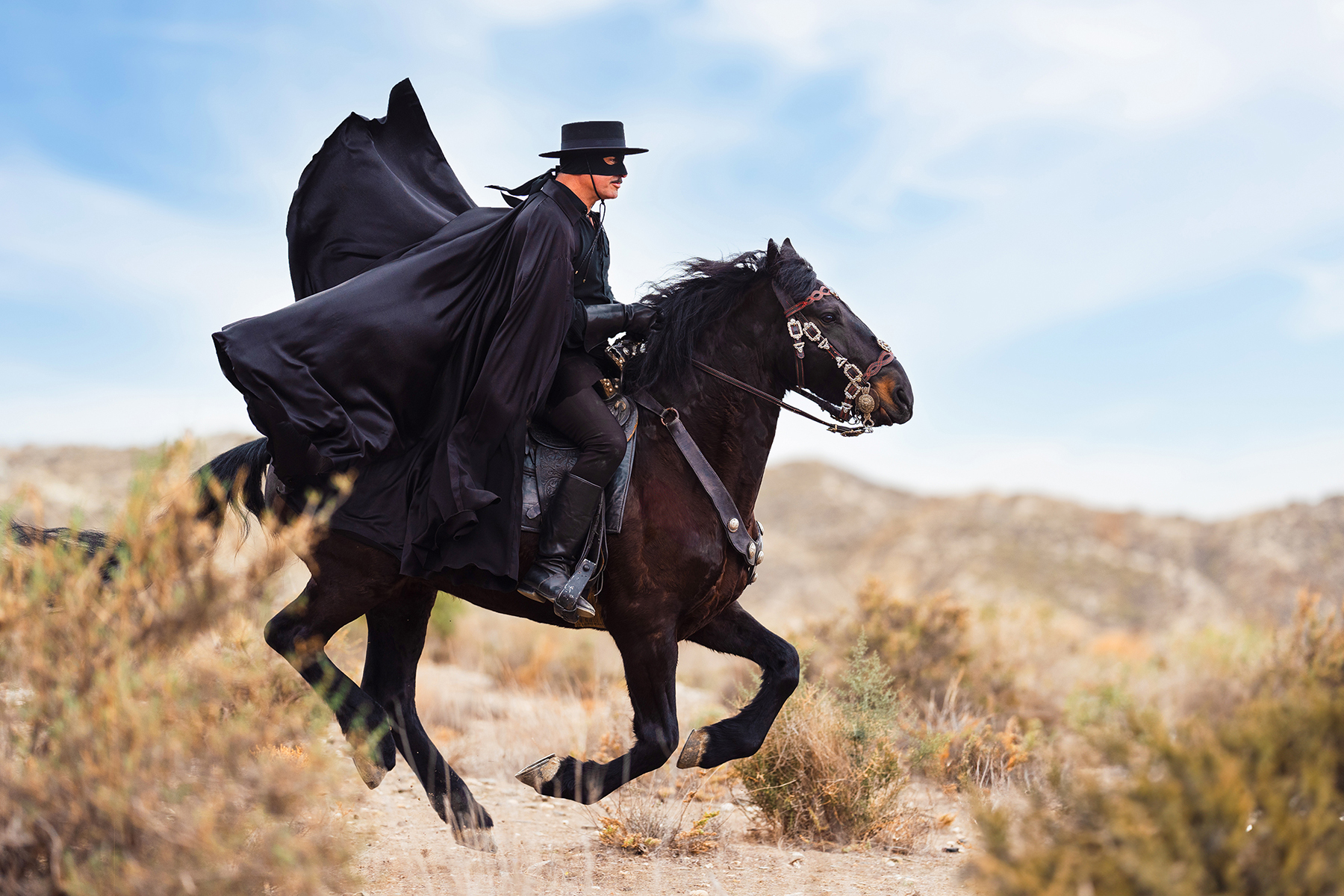 La serie Zorro, dirigida por Benjamin Charbit y Noé Debré, sitúa la acción en Los Ángeles de 1821, donde un maduro Diego de la Vega, ahora alcalde, se ve obligado a retomar su identidad como justiciero. Con un elenco internacional —Jean Dujardin, Audrey Dana, André Dussollier, Eric Elmosnino, Grégory Gadebois, entre otros— y una producción de alto presupuesto, la ficción eligió El Chorrillo (Pechina, Almería) como escenario principal, reafirmando la tradición cinematográfica de la provincia como plató natural para grandes producciones históricas.